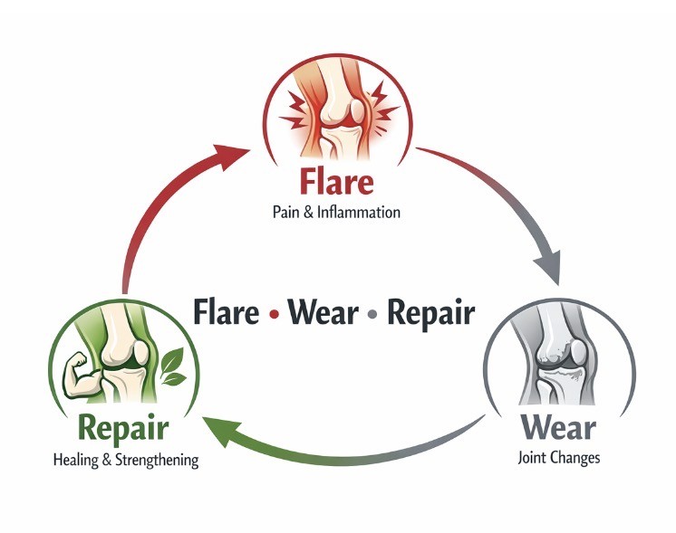 Why “Wear and Tear” Is the Wrong Way to Describe Knee Osteoarthritis... and Why “Flare, Wear and Repair” Makes Far More Sense